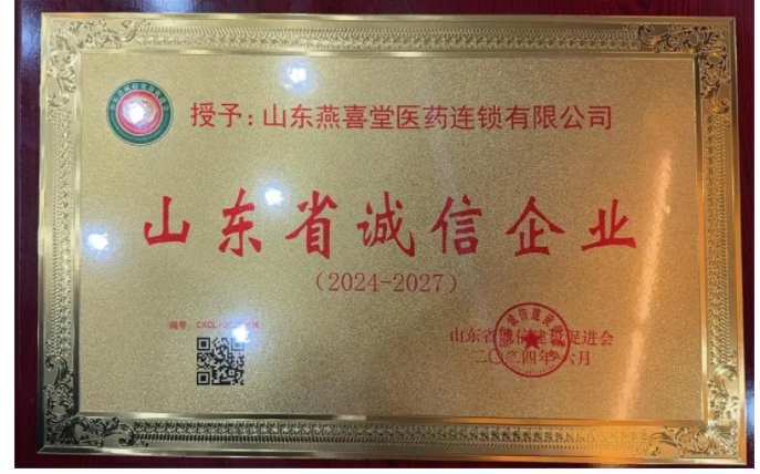燕喜堂榮膺“山東省誠信企業”榮譽稱號